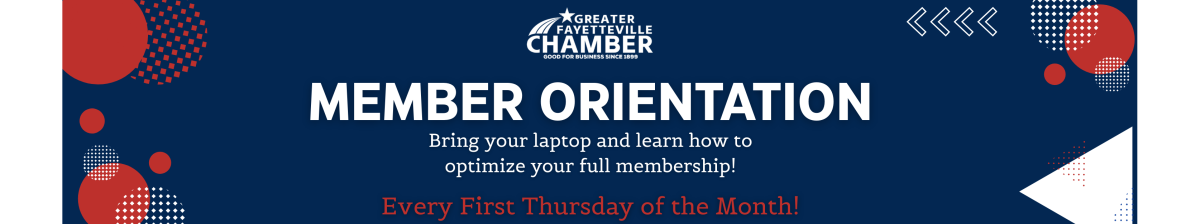 The Greater Fayetteville Chamber’s Member Orientation is a welcoming, high-energy session designed to help new and existing members make the most of their Chamber investment. During this brief program, attendees learn how to access key benefits, connect with fellow members, and plug into the many opportunities available through the Chamber.