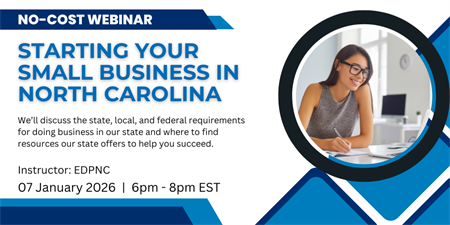 Speaker: Sharon Walker is a Sr. Small Business Advisor with the Economic Development Partnership of North Carolina. She is a business consultant with experience in customer service, technical support, and project management. Prior to coming to EDPNC, she has worked with government agencies, NC Department of Health & Human Services and NC Department of Revenue, and with large corporations, Kodak and WorldCom.